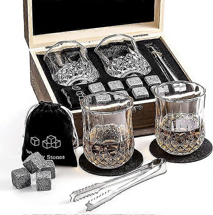 Qinhai Whiskey Stones And Glasses Gift Set, 2 Bourbon Glasses And 8 Granite Ice Cubes, Valentine's Father's Day Birthday Santa Christmas Pres
