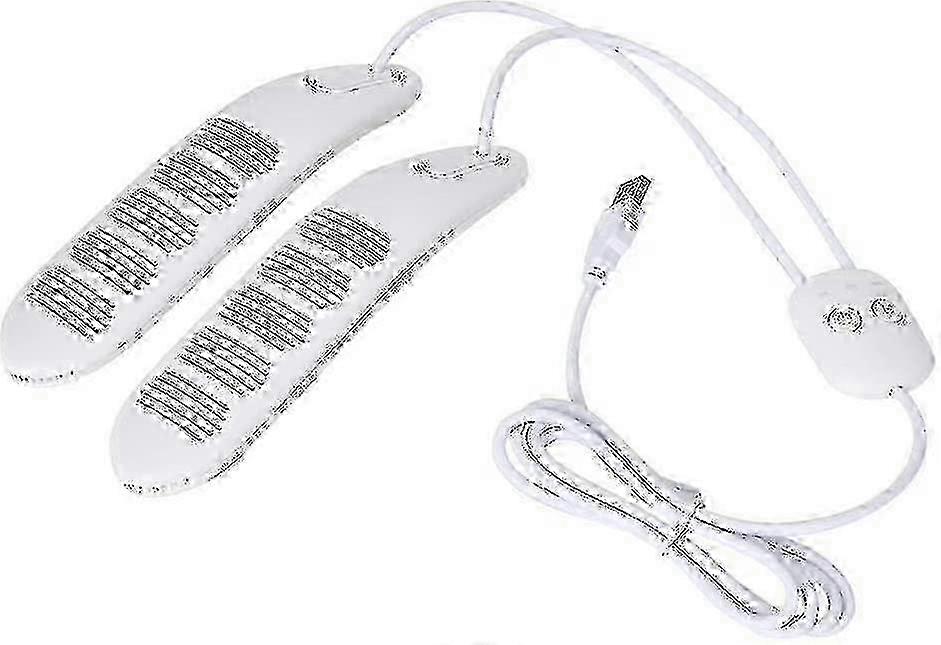 QUICK ENERGY SAVING AND COOLING- The front louver design of the electric boot dryer, with a surface temperature of 60 degrees, helps the shoes dry evenly. It can quickly remove the moisture and odor in the shoes, prevent the shoes from overheating or burning, without damaging the shoes, and keep the feet dry and healthy.The electric shoe polisher supports smart timing, according to your own needs, you can easily choose 3H or 6H or 9H to automatically shut down. The configuration of the USB interface, 5V current access, can be used anytime, anywhere. Built-in powerful intelligent core, automatically recognize the current and convert it into 2A effective current.DOUBLE CORE RING HEATING- 360 degree heating in all directions, vertical and horizontal pores ensure uniform heat distribution. Double core ring heating, uniform heating, rapid heating. The upper and sole can be dried at the same time. Dry and deodorize shoes and gloves.ALL-ROUNDER- this boot dryer can adapt to most footwear and most materials, is compact and versatile because it is easy to travel and pack. Outdoor sports, chores, hunting, hiking, camping, fishing, etc. are essential.Delivery Quantity: 1 setProduct color: whiteProduct size: 45x175MM Note: Due to the light and screen setting difference, the item's color may be slightly different from the pictures. Please allow slight dimension difference due to different manual measurement.