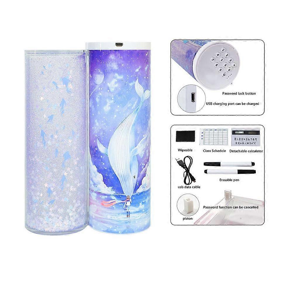 Quicksand Pencil Box Magnetic Clasp Exquisite Intelligent Password Quicksand Pencil Case with Calcul