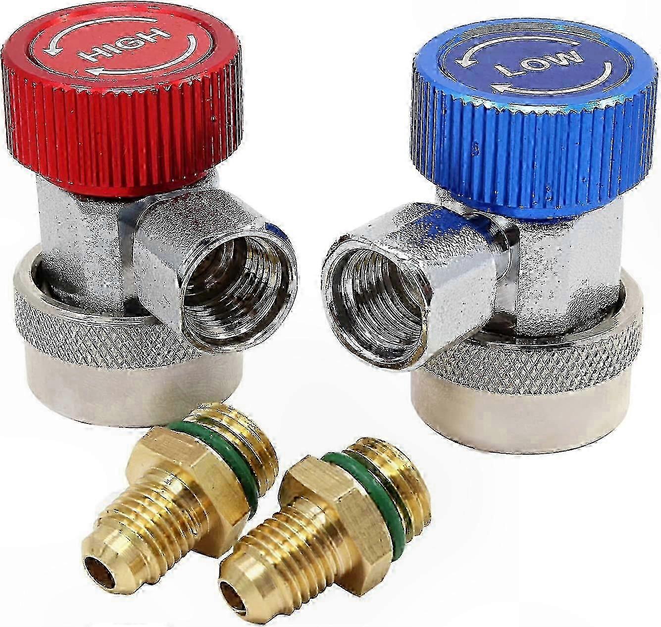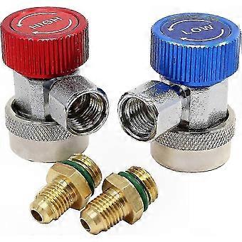 R134a Quick Coupler Adapter for Auto AC, Red & Blue Connectors, Adjustable High Low Functionality