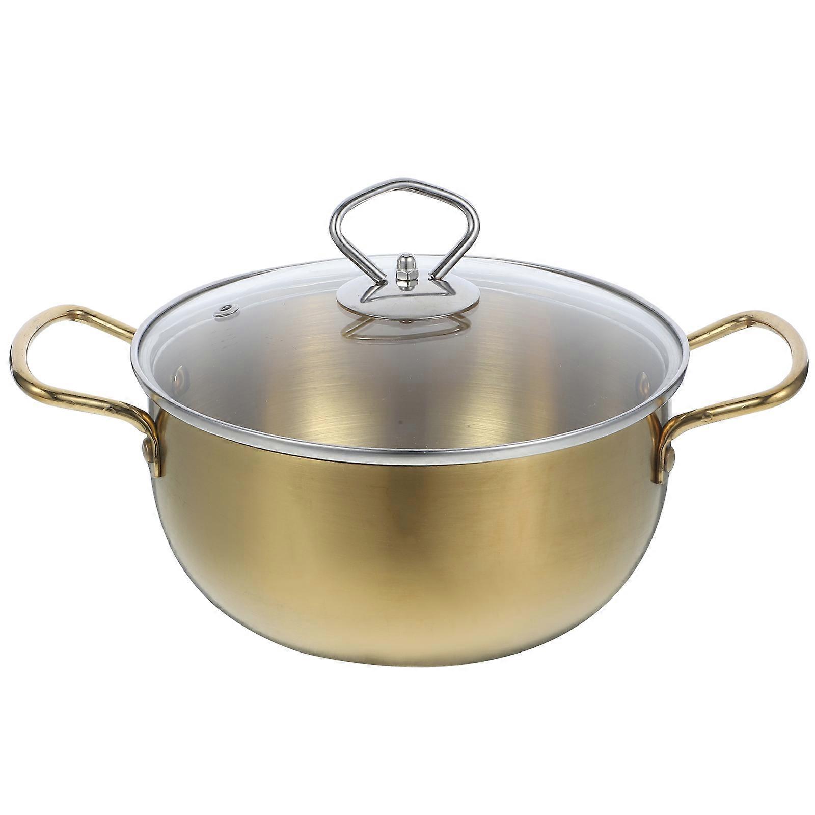 Ramen Pot with Lids Stockpot for Instant Noodles Non-stick Golden 18cm Pot with Lid 1 Set