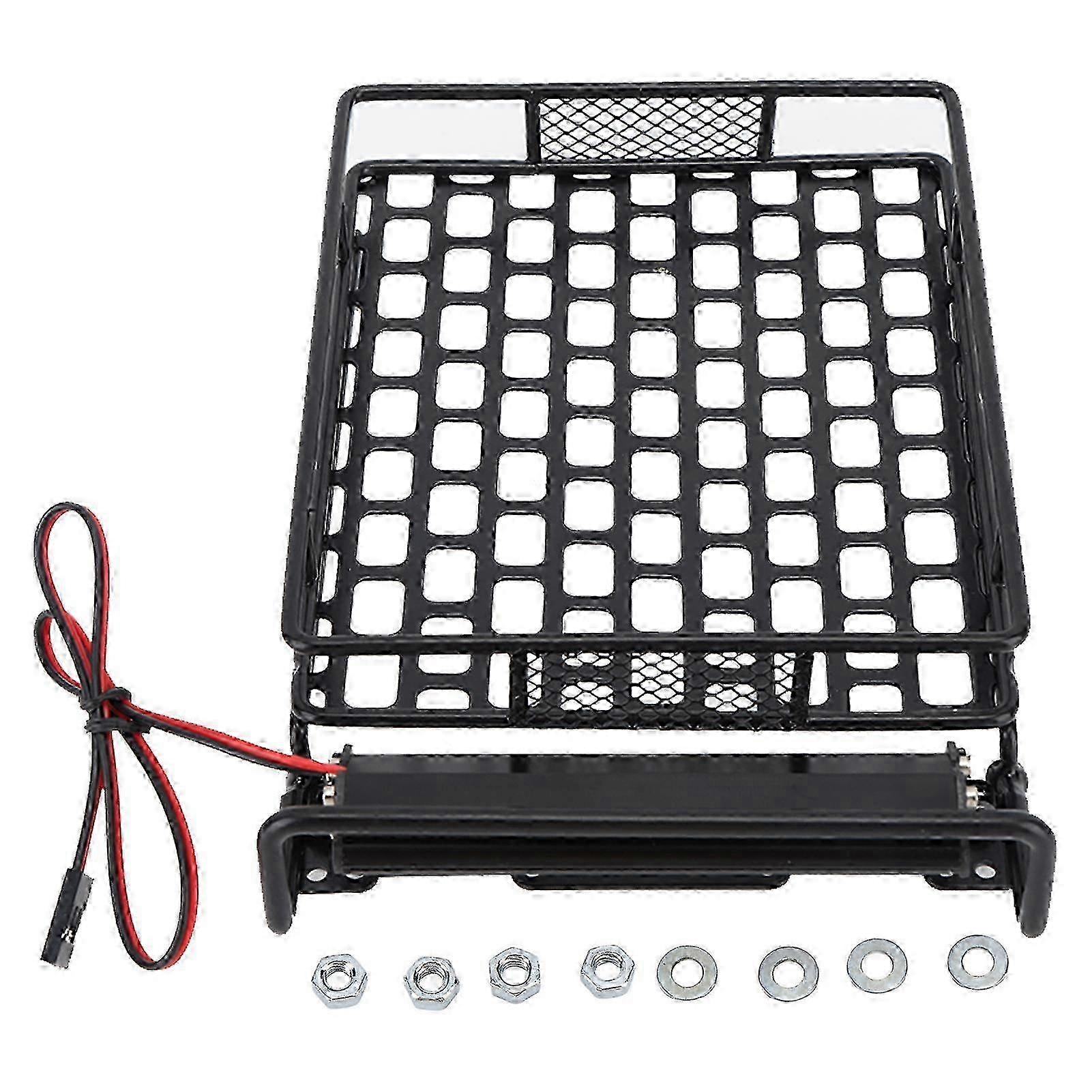 RC Car Roof Rack Black Iron Sturdy RC Roof Luggage Carrier with 8 LEDs White Light