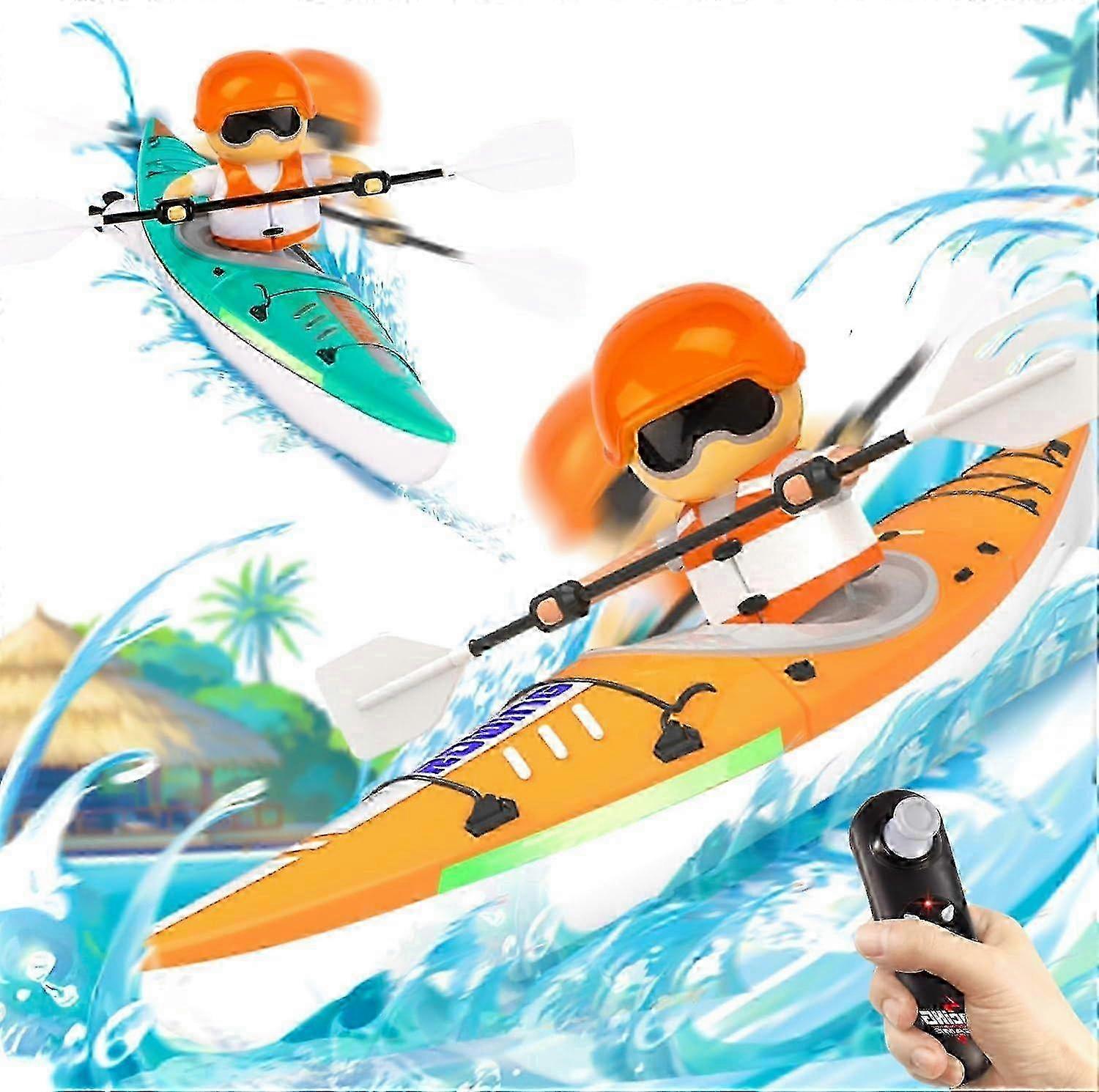 RC Kayak Boat W/Colorful LED Light For Kids, Innovative Realistic Paddling Design,2.4 Ghz Remote Control Boat Toy,50% Offer