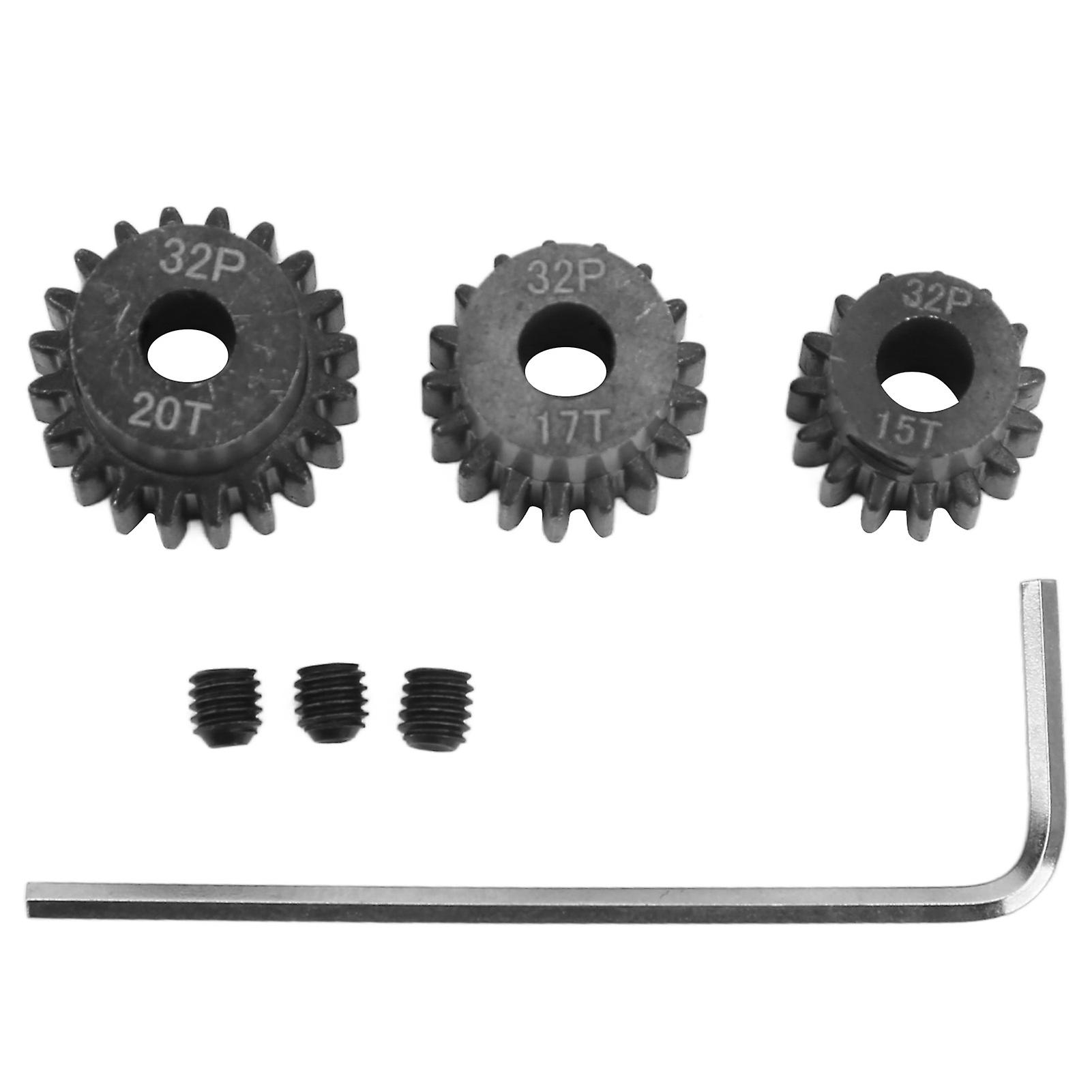 RC Motor 3 Gear Set 15T 17T 20T Steel Motor Pinion Gear 0.8MOD for ARRMA Granite 1/10 Model Car