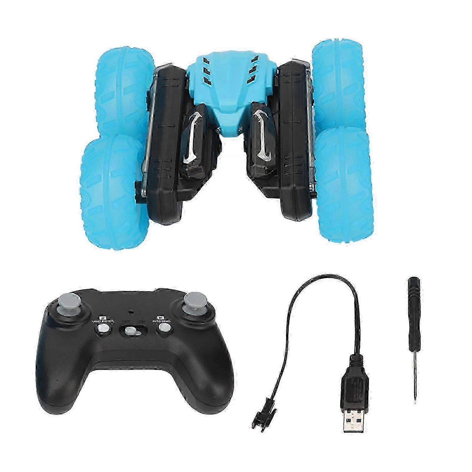Feature 1Powerful: RC stunt car toy adopts 2.4GHz remote control, all round driving, anti interference control, strong forward power, long lasting and playable, wireless remote control distance of 80 meters. 2Cute Shape, Display Text: Toy Car is designed in the shape of a bugs and has the function of light display text. Show four words, GOOD, HAPPY, I LOVE YOU, HELLO, interesting ideas. 3360 Degree Rotation, 7 Colors: 2.4G stunt car can rotate 360 degree, stunt car has 7 different color changes, play at night is more cool, tumbling surface driving design, and can also unfold glare stunt tumbling. 4Transparent Tires: Remote controlled car adopts transparent rubber tires, high elasticity, wear resistance and non slip, adapt to a variety of terrain, rock climbing, off road, sand, grass, flat, snow fearless. 5Four Wheel Drive: RC stunt car toy adopts four wheel drive, power speed of 14km/s, double sided driving tumbling, more playful, so that our model is not afraid of rollovers or bad terrain, drive as you like. 6Long Battery Life: RC stunt car adopts large capacity 3.7V 500mAh lithium battery, charging time of 140 minutes, battery life of 17 minutes, long lasting and stable power supply, Pengya power. 7Multi Modes: 2.4G stunt car can go forward, backward, turn left, turn right, rotate. Rolling. Swing arm. The light displays text and the light can be turned off. Automated presentation. Illuminated wheels, etc., provide a variety of operating modes and fun.Item Type:RCStuntCarMaterial: ABS, Electronic ComponentsSize: Approx. 168x144x70mm / 6.61x5.67x2.76inFrequency: 2.4GhzBody Battery: 14500-3.7V 500mAh Lithium Battery x 1 (Matching)Remote Control Battery: 2 x 1.5V AA (Not included)Suitable Age: for 8 Years Old and Above .wang-edit-text{ font-family:'Arial' !important; } .wang-edit-text table { border-top: 1px solid 000; border-left: 1px solid 000; } .wang-edit-text table td, .wang-edit-text table th { border-bottom: 1px solid 000; border-right: 1px solid 000; padding: 3px 5px; } .wang-edit-text table th { text-align: center; }Package List1 x Stunt Car1 x Remote Control1 x Body Battery1 x USB Charging Cable1 x Screwdriver1 x Instruction ManualNote1. Due to manual measurement, 1and 8209;3mm/0.04and 8209;0.12in error is allowed, thank you!2. Due to differences between different monitors, the picture may not reflect the actual color of the item. Note: Due to the light and screen setting difference, the item's color may be slightly different from the pictures. Please allow slight dimension difference due to different manual measurement.