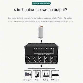 Features: Supports 4 inputs to 1 output audio switcher Supports easy switch via button Supports lower power consumption Supports 3.5mm aux or l/R in and out Easy to install and simple to operate The 4 x 1 Stereo Audio Selector Switcher is a high performance switcher. It is Perfect for distributing stereo audio signals from PC, laptop, TV, VCR, DVD, satellite receivers. size: 141 x 74 x 39MM Material: Metal button hat colour: A-purple / B-Black Package Contents: 1 x RCA AUX Audio Switcher Only the above package content, other products are not included. Note: Light reflection and different displays may cause the color of the item in the picture a little different from the real thing. The measurement allowed error is +/- 1-3cm.