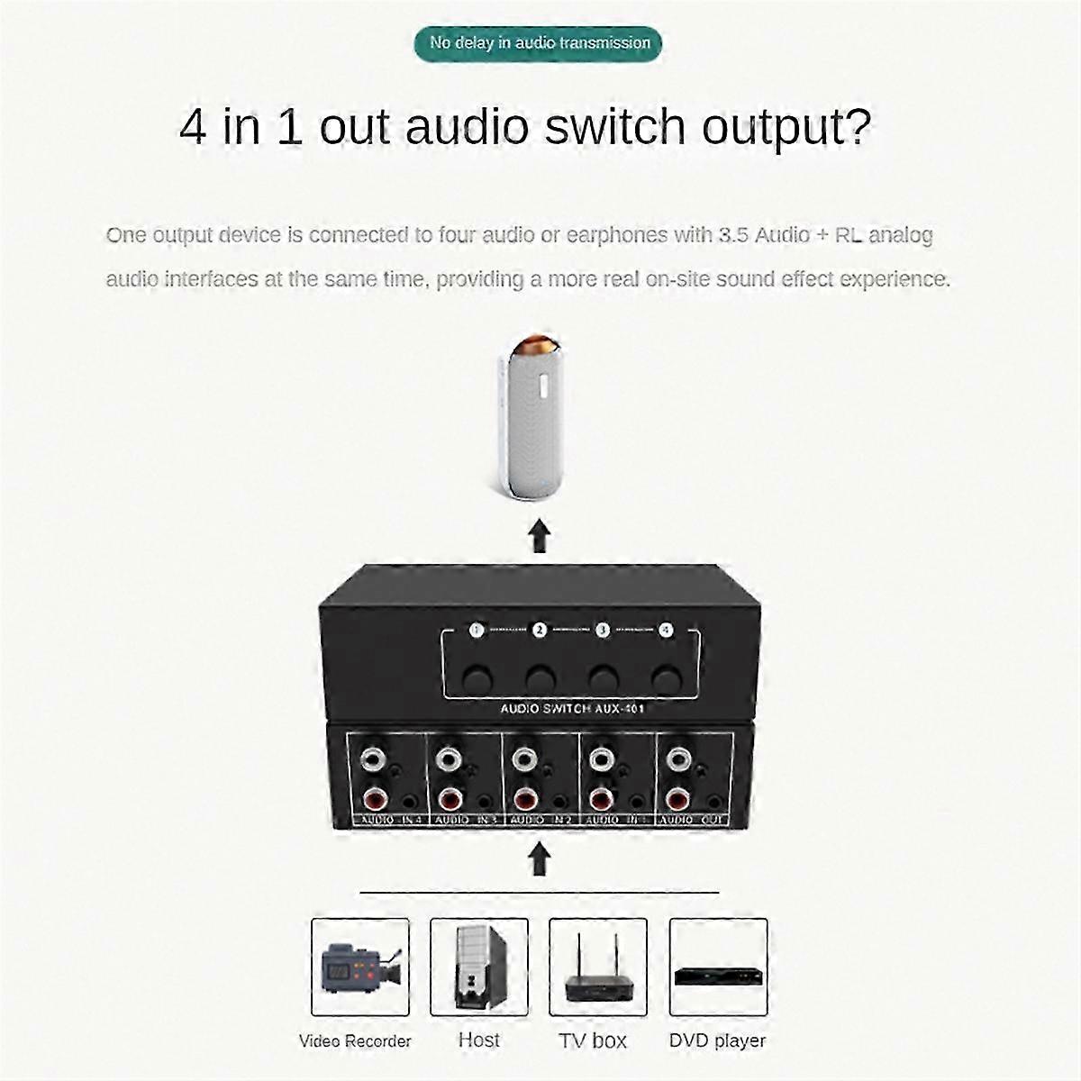 RCA AUX Audio Switcher - 4-in-1 Stereo Audio Selector Box with 3.5mm Aux & RCA Audio Output for Multi-Device Connection