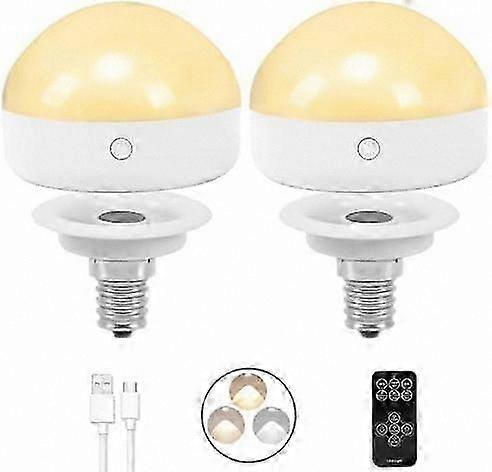 Rechargeable E14 Bulb, 2 Pack, 300LM, Dimmable, 3 Color Modes, Remote Control, Timer Function, Emergency Detachable Lamp for Home Use