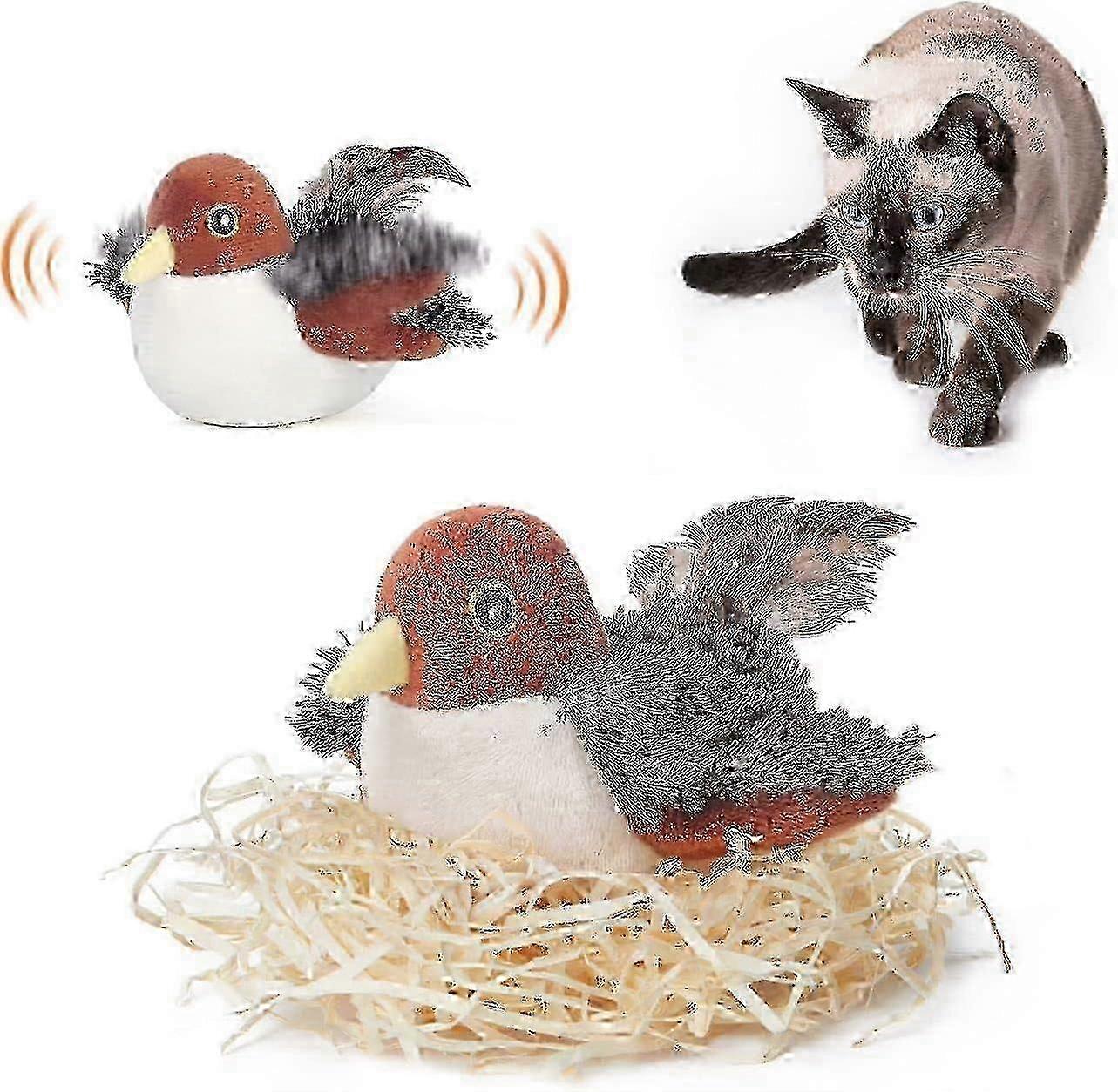 Rechargeable Flapping Bird Sparrow Cat Toy - Lifelike Chirp Tweet, Touch Activated miao4