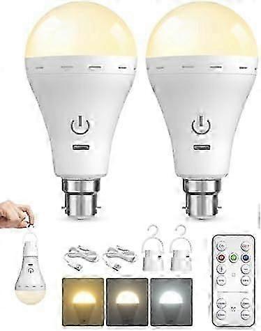 Rechargeable Light Bulbs with Remote B22, 3-Color & Stepless Dimmable with Timer, USB Rechargeable Battery Light Bulb, Up to 35H, szbym02