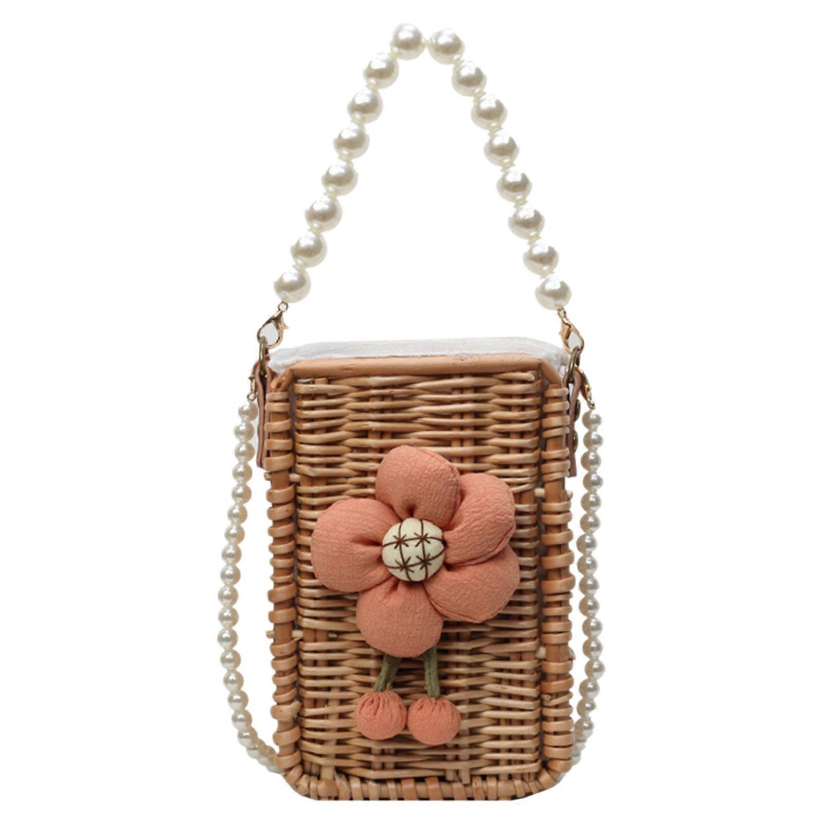 Rectangular Straw Handbag Elegant Crossbody Bag Drawstring Shoulder Bucket Bag for Various Occasion brown
