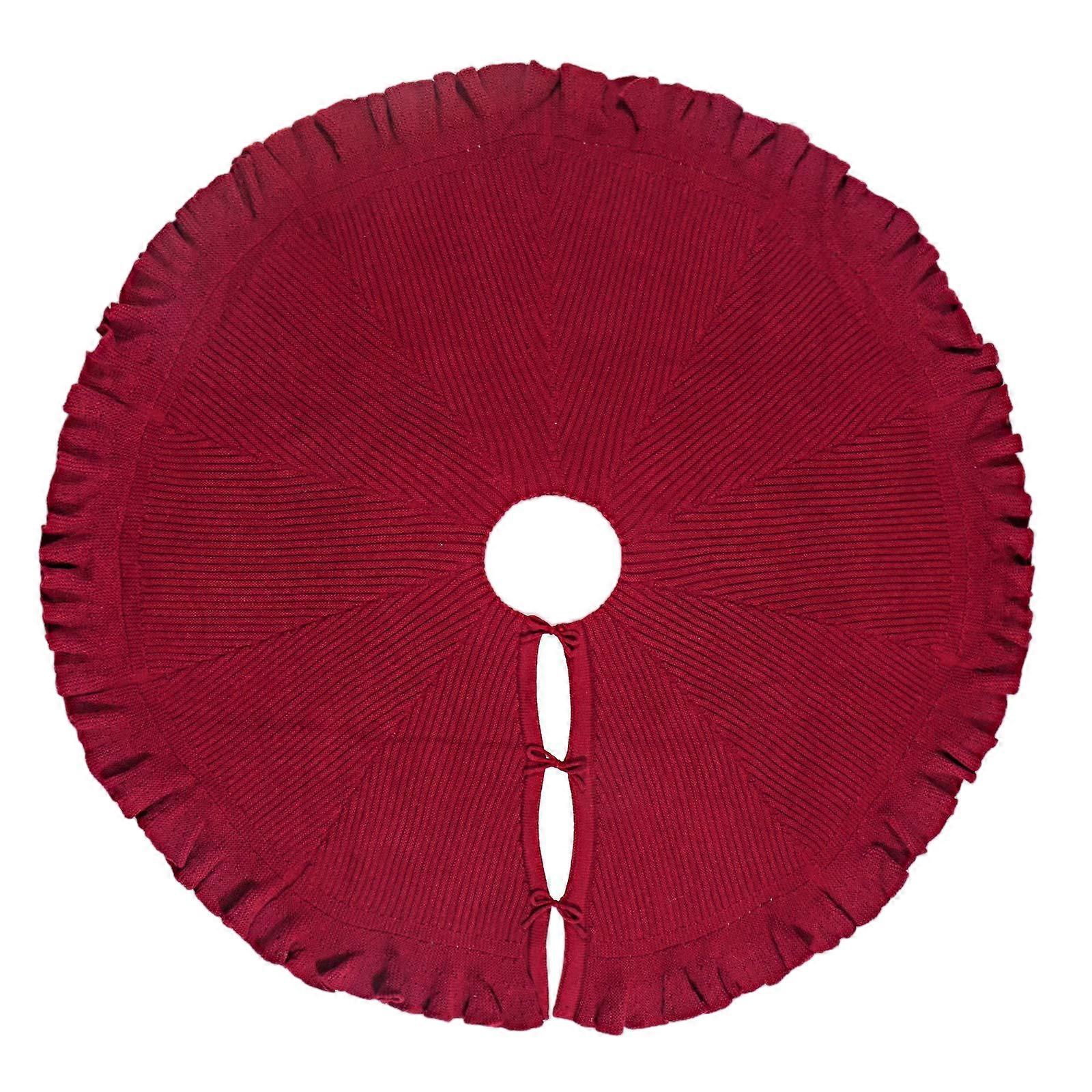 Red Christmas tree skirt with knitted ruffled lace, suitable for multiple scenarios