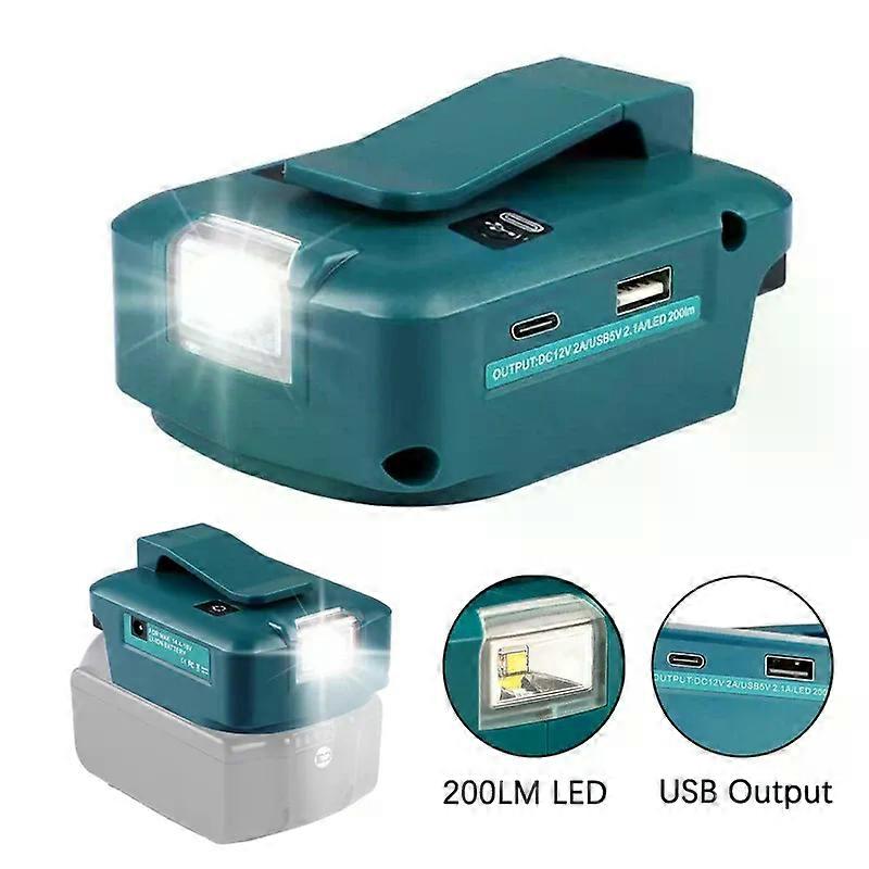 Replacement Power Source with 200lumen LED Work Light for Makita 144V/18V Li-ion Battery BL1430 BL1830 Portable USB Adapter