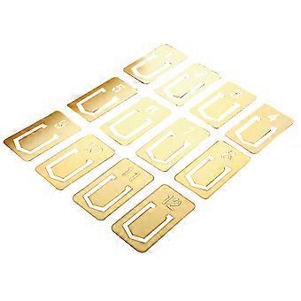 Retro Metal Bookmarking Pages Number Pattern Brass Bookmarks for Writers 12Set