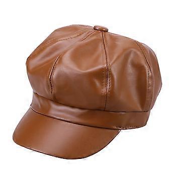 Retro Octagonal cap with PU Artificial for Stylish Dressing Up One Size Fits Most Brown