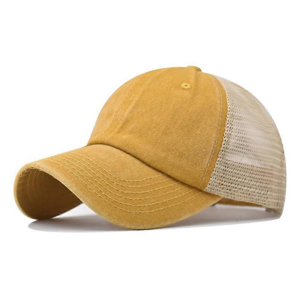 Retro Style Mesh Back Baseball Cap Adjustable Men's Trucker Hat Solid Dad Hat
