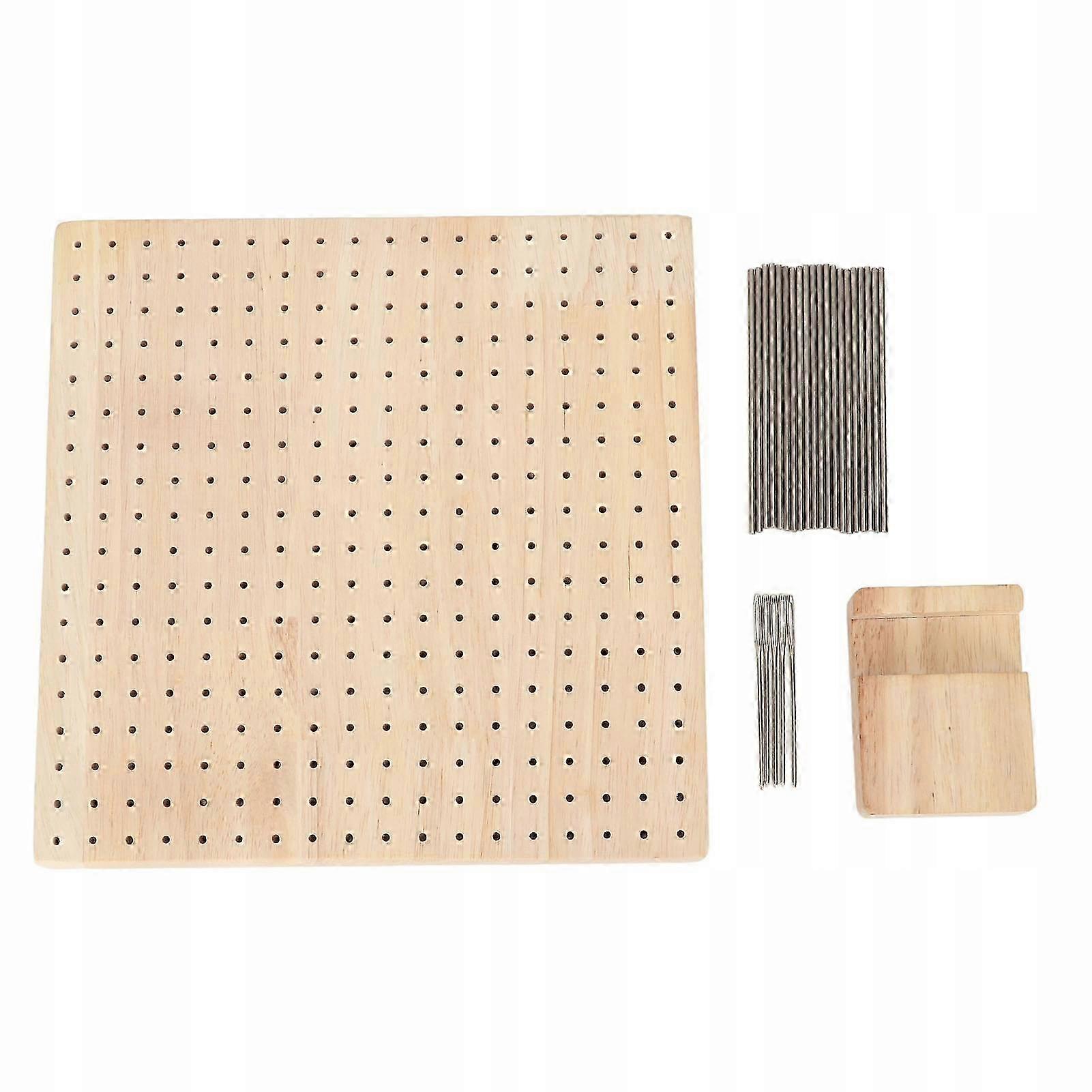 Function: 1. Evenly spaced holes: woven block ma 324 holes, each hole is 0.5 inches apart, which is convenient for alignment and accurate completion of the design. 2. REUSABLE: The wooden knit board with accessories is easy to use out of the box and can be reused to avoid throwing away the knit after each operation. 3. PERFECT PREZENT: Square wooden locking board with large mesh steel needles makes them the perfect gift for any crochet hook, kids, kids or knitting lovers. 4. HAND ON SKILLS: Handcrafted wooden locking board is very suitable for sewing, it can nurture children's practical skills and interest in knitting technology. 5. RUBBER WOOD: Made of rubber wood materials, which are reliable, durable, resistant to falling, scratches, environmental protection and long service life. Specification: Item Type: Wooden Locking Board Material: rubber wood Board size: approx. 23,5 x 23,5 x 2 cm or 9,3 x 9,3 x 0,8 inches Small bracket: approx. 8 x 6 x 2 cm or 3,1 x 2,4 x 0,8 inches 201 stainless steel bar length: about 10cm or 3,9inch Long steel needle with large eye Length: about 7cm or 2,8inch List of packages: 1 x Board 1 x Small Bracket 20 x Steel Bars 5 x Steel needles with large eye 1 x Storage Tube