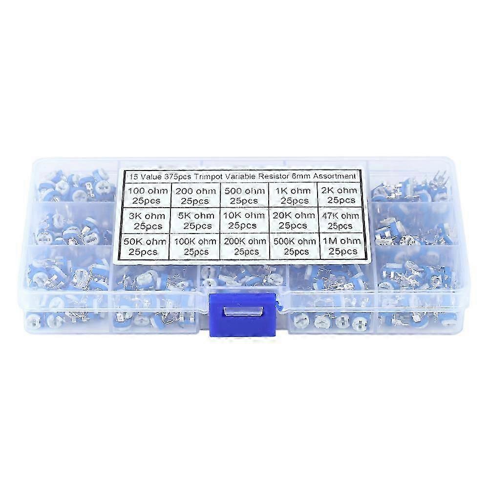 Risegun 15 Values Variable Resistor Variable Resistor Assortment Kit 375Pcs, 15 Values Potentiometer with Box
