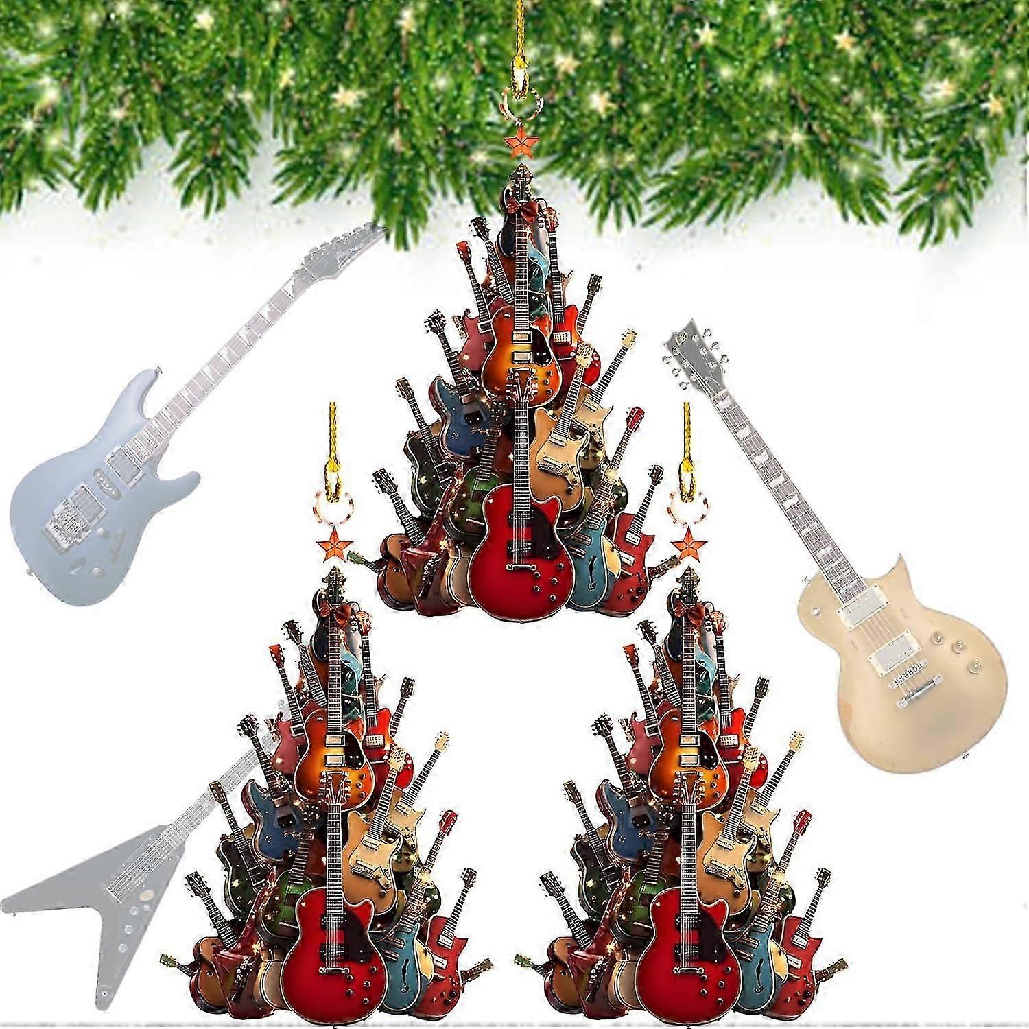 Rockin' Around The Guitar Christmas Tree Ornament, 2D Premium Acrylic Rock Guitar Christmas Tree Ornament, Guitar Musical Instrument Ornament Gift for
