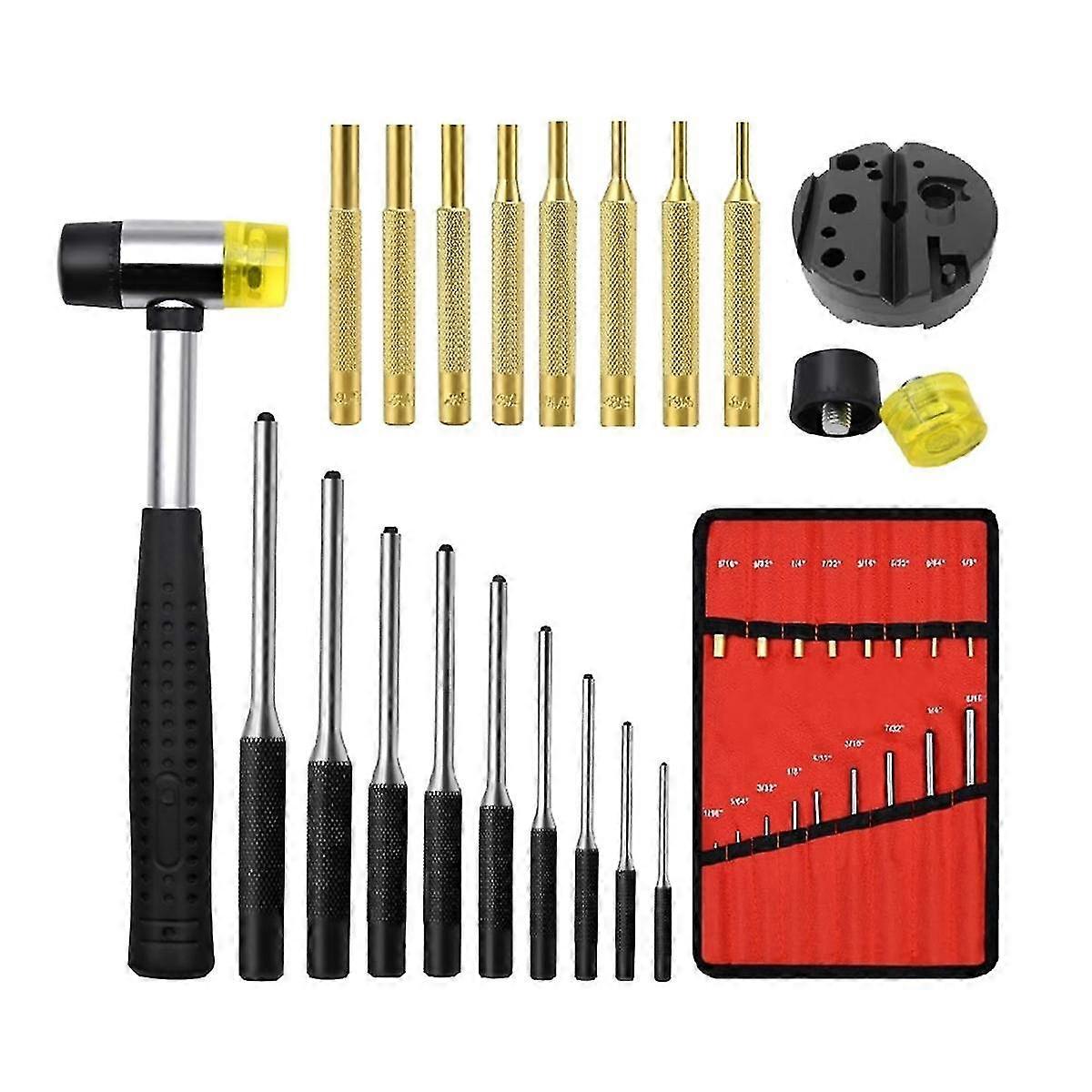 Roll Pin Punch Set With Storage Pouch, Smithing Punch Removing Repair Tools, With Bench Block Pin Punches And Hammer