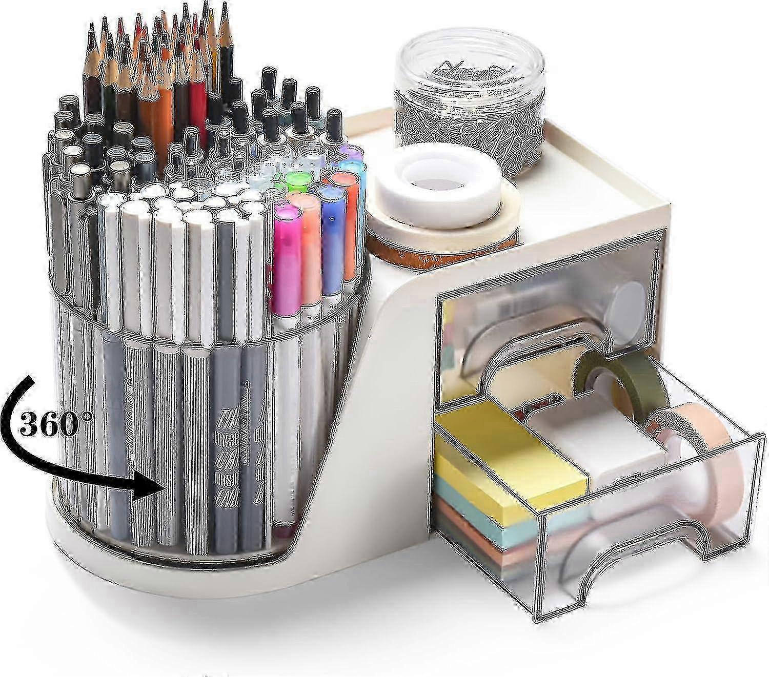 Rotating Desk Organizer with 2 Drawer, Pencil Pen Holder for Desk, Desk Organizers and Accessories with 4 Compartments + Drawer for Of