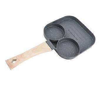Round Egg Pan, 2 Round Cups, 3 Sections, Non-stick, with Wooden Handle, for Gas Induction Cooker