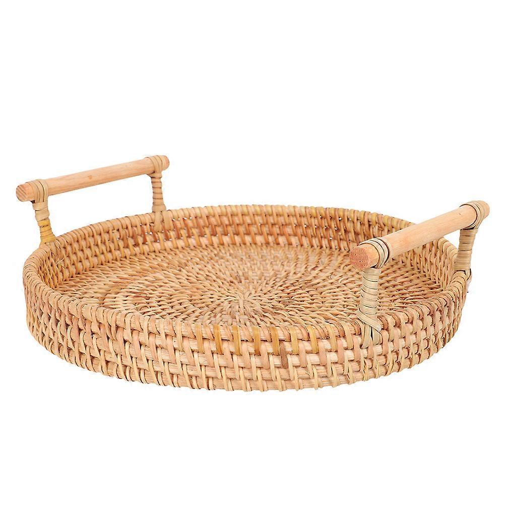 Round Rattan Serving Tray for Bread with Handles Wicker Basket