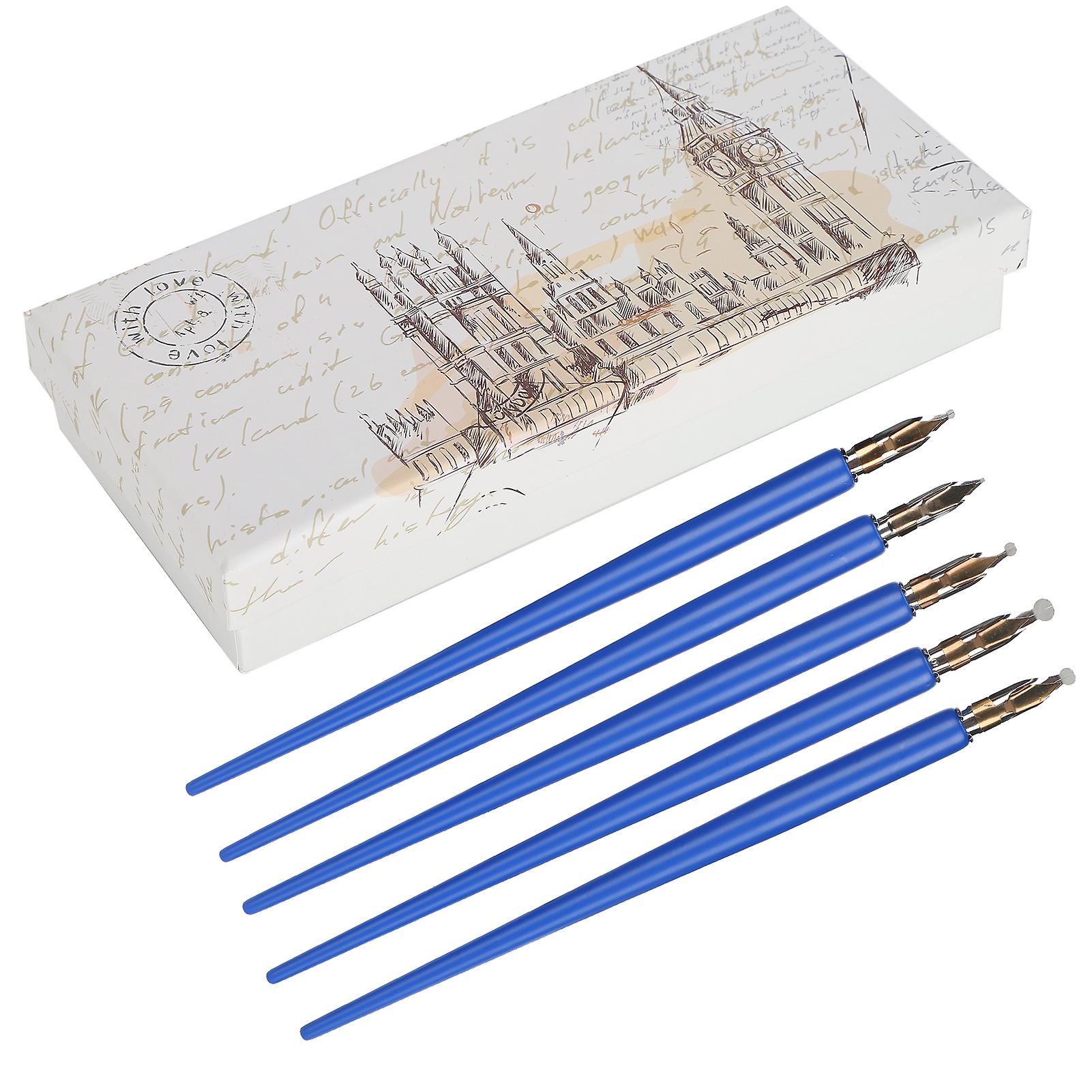 Wooden Handle Dip Pen Home Office Art Painting Calligraphy Fountain Pen Set GiftRoyalblue Thin Long Handle
