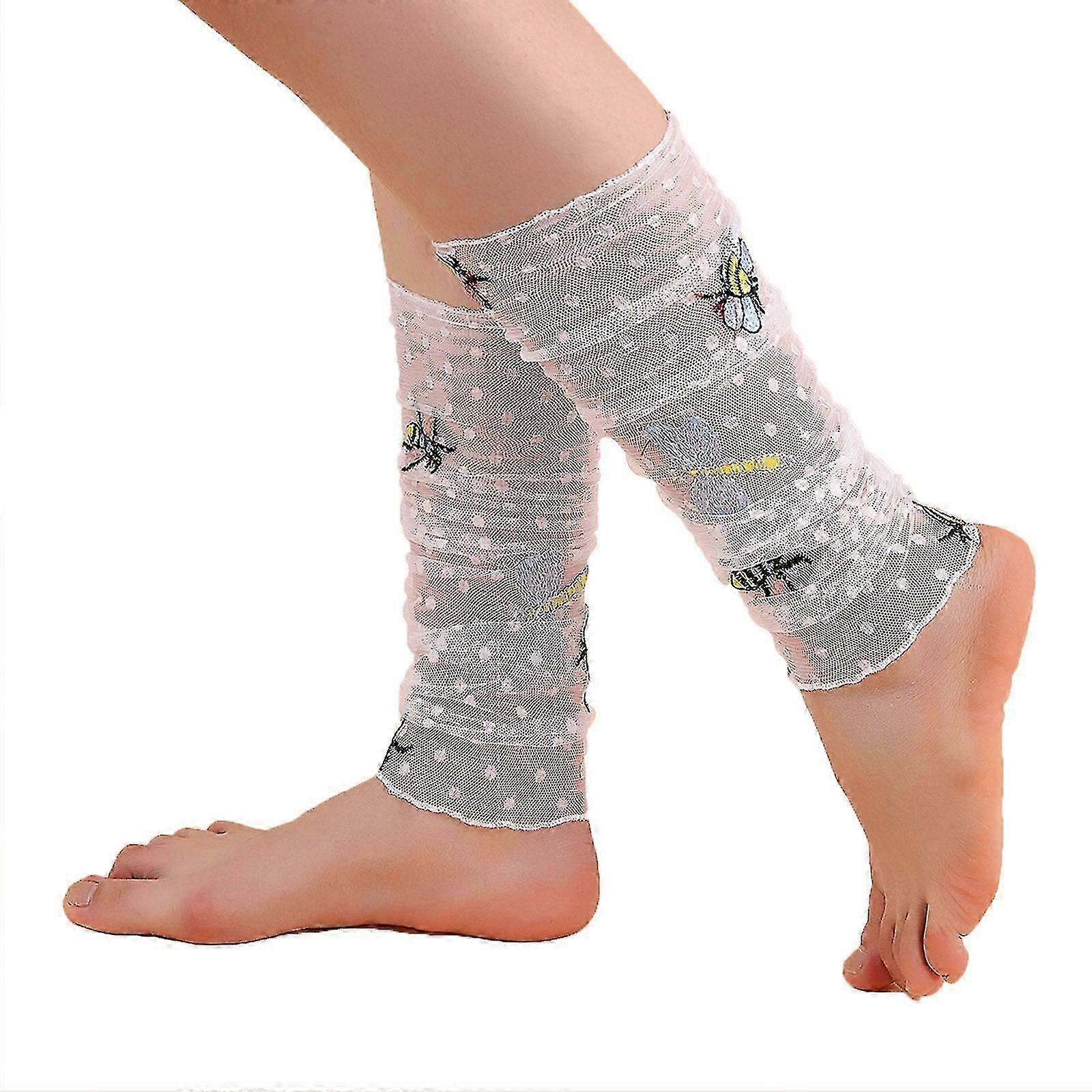 Women Girls Japanese Summer Mesh Leg Warmers Multicolor Dots Embroidery For Butterfly Star Foot Covers Lolita Cosplay Middle Tube Ruched Calf Socks