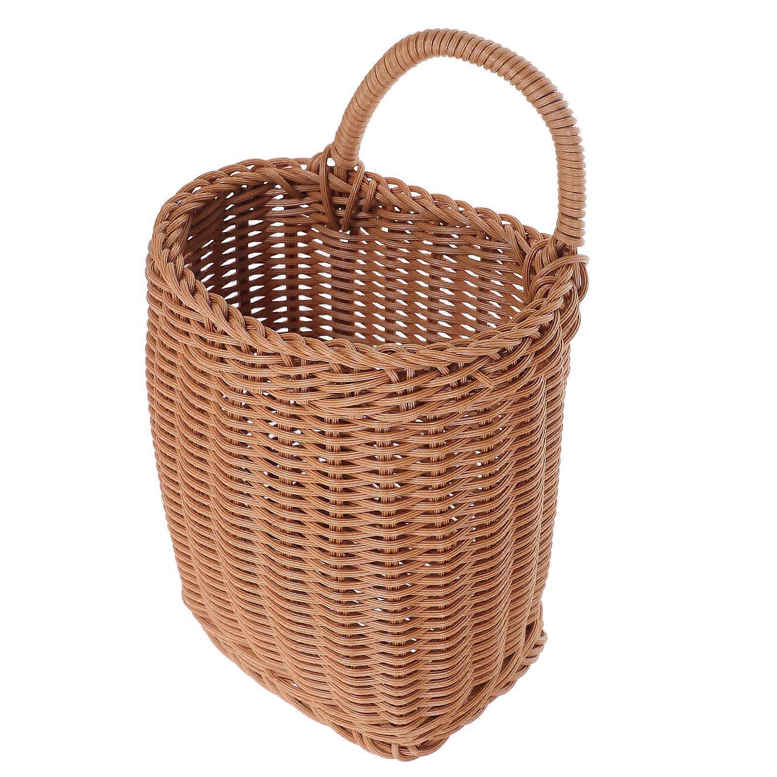 Say goodbye to clutter with our wall-mounted rattan basket. This versatile storage solution is for organizing kitchenware, fruits, and other household items. Its imitation rattan design adds a rustic charm to your home, while the sturdy construction it can handle heavy loads without deforming. Features - Color: Brown -Material:Plastic, iron - Size: 25.00X16.50X12.00cm/9.82X6.48X4.72in -This versatile storage basket is designed to seamlessly fit into kitchens, living rooms, and other areas, providing a practical solution for organizing various items. -The artificial rattan weaving adds a touch of elegance to your home decor, making it a stylish addition that enhances the overall aesthetic appeal of your space. -Constructed with durability in mind, this storage basket is built to support heavy loads without bending, ensuring use and reliability. -Featuring a wall-hanging design, this basket optimizes space by keeping your items off the floor, helping you maintain a tidy and organized home environment. -Not only does this storage basket solve your storage problems, but it also serves as a decorative piece, adding a unique and functional element to your living spaces. Package list: 1 x wall hanging storage basket