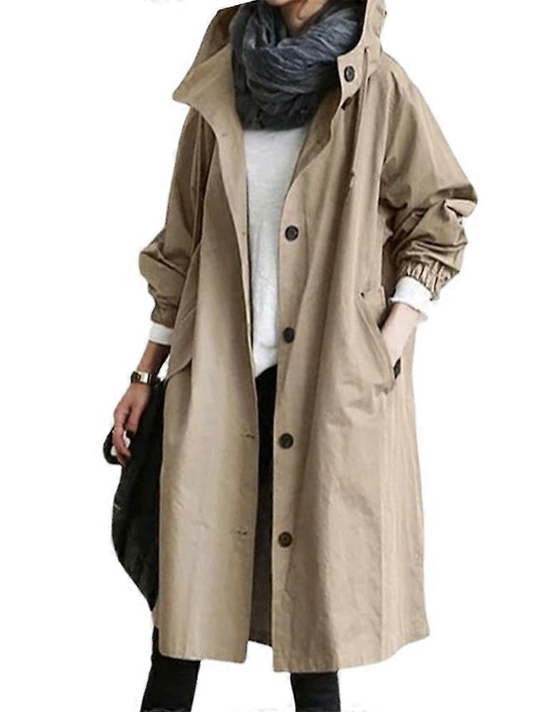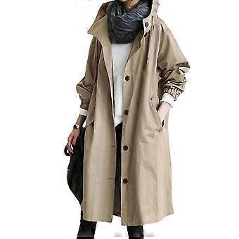 S-5XL Size Chic Women Trench Coat with Cap Button Casual Women's Long Outerwear Loose Overcoat Autumn Winter Fashion