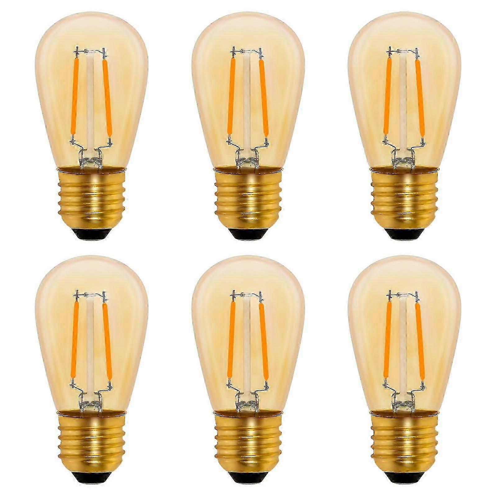 S14 Vintage Led Filament Light Bulb E27, 1w Amber Edison Replacement 10w Incandescent, Non-dimmable, Warm White 2200k, Ac 220v, Pack Of 6