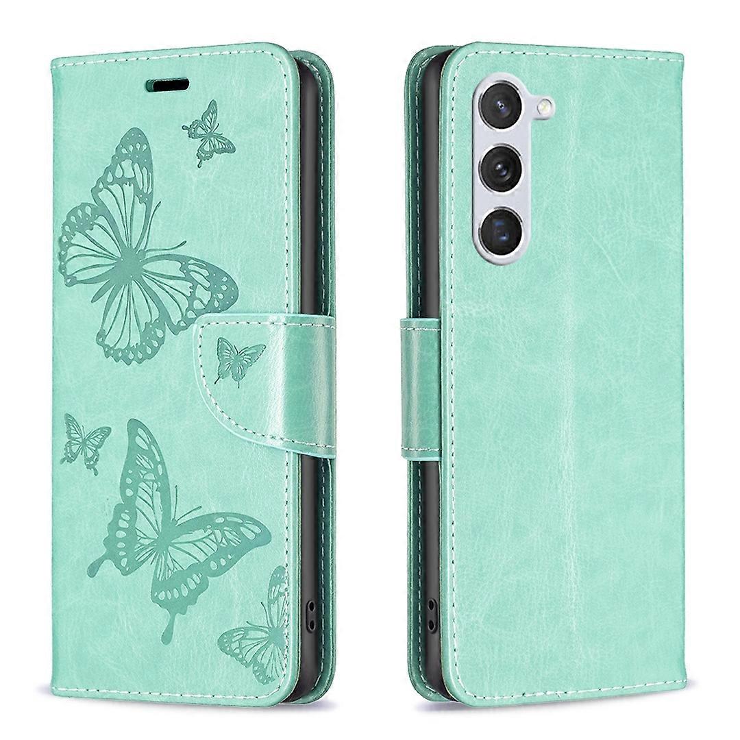 For Samsung Galaxy S23 5 Embossing Two Butterflies Pattern Leather Case