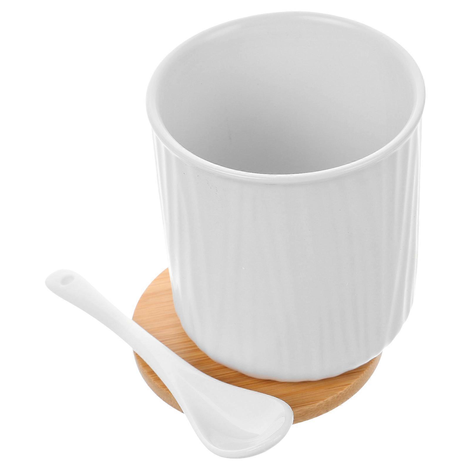 Salt Container With Spoon Ceramic Seasoning Bowl For Daily Use 300ML Simple Round Modern Style 1 Set