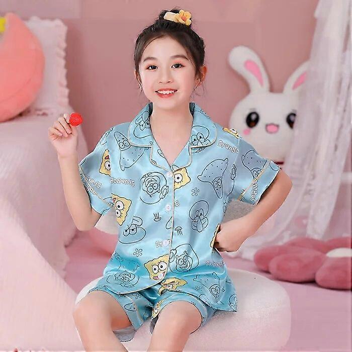 Sanrio Kawaii Cinnamoroll Kuromi My Melody Summer New Kids Pajamas Short Sleeve Ice Silk Girls Cartoon Pajama Sets Homewear Gift