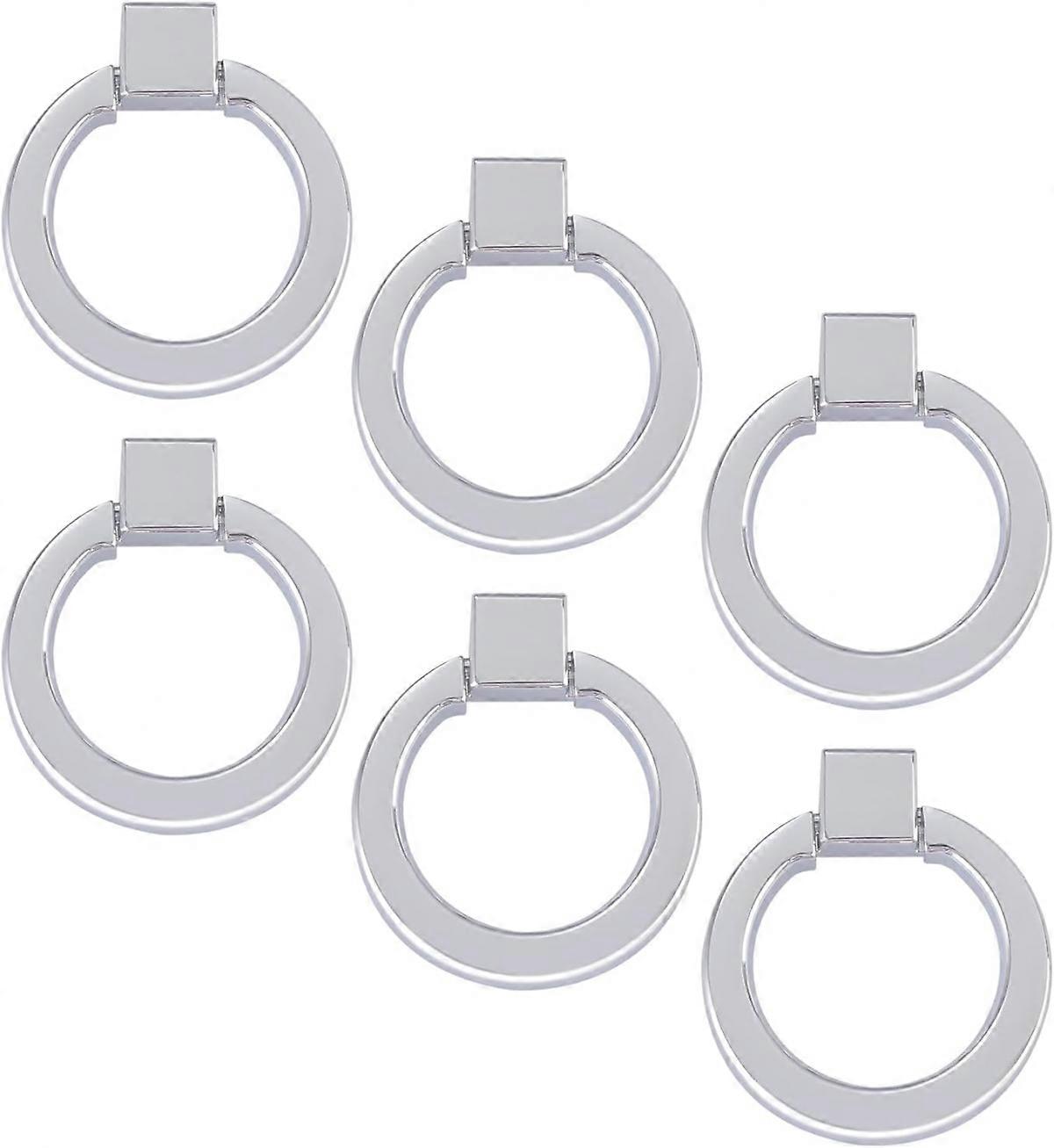 Savagrow 6pcs Chrome Silver Round Ring Pulls Cabinet Drawer Drop Ring Pulls