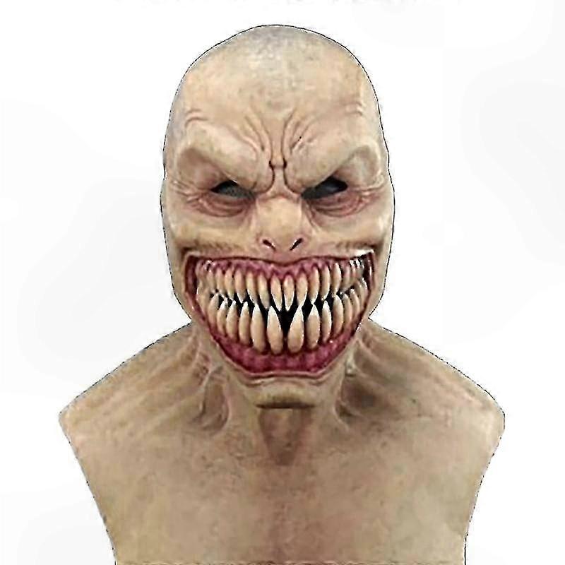 Scary Halloween Mask with Sharp Teeth and Split Mouth for Horror Events
