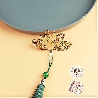 Brass Bookmark With A Lotus Flower And Dark Green Tassel
