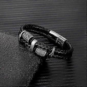 سوار من الجلد الأصلي للرجال على طراز الفايكنج مع خيوط متعددة الكاميرات وهدية مجوهرات من الفولاذ المقاوم للصدأ من الشمال للأزواج