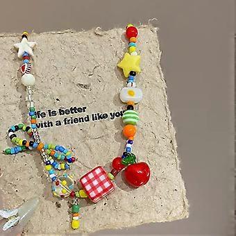 Söpö sarjakuvaomenahedelmärusetti värikkäät helmet kaulakoru egirl gootti vintage vuosi 2019 ihanat korut esteettiset asusteet lahja