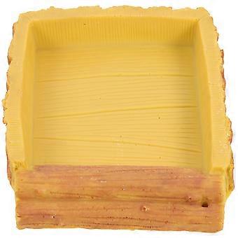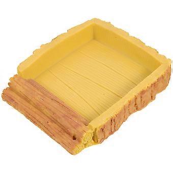 وعاء ماء متين للزواحف وطبق تغذية لمرابي - حاوية مياه سهلة للسحالي والثعابين والسلاحف - تصميم حبيبات الخشب الأصفر