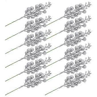 DIY بيري ديكور ديكور بيري فرع شجرة عيد الميلاد زينة الفضة 18X5 سنتيمتر DIY إكليل الزهور اكسسوارات 12 قطعة
