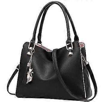 حقيبة يد جلدية من البولي يوريثان للنساء حقيبة حمل متعددة الجيوب سعة كبيرة 32X14X41 سم أسود 1 قطعة