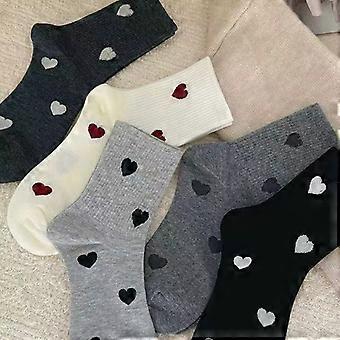 5 Pairs Women Mid Cute Heart Socks High Quality Breathable Korean Style Fall Winter Fashion Socks
