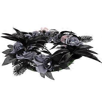 إكليل هالوين أنيق مع العنكبوت ولهجات ، زخرفة الباب القوطي الرمادي لعيد الهالوين وعيد الحب