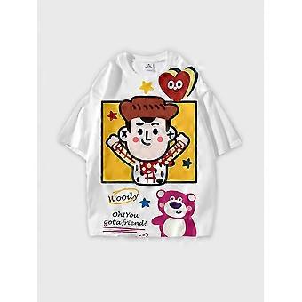 Leikkisä sarjakuvaprintti pyöreä kaula-aukko löysä T-paita - JW105