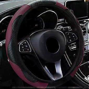 غطاء عجلة القيادة العالمي للسيارة تنفس مضاد للانزلاق PU أغطية التوجيه الجلدية مناسبة 37-38 سم زخرفة السيارات من ألياف الكربون