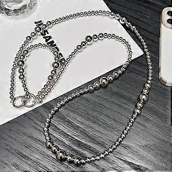 Double Chain Silver Beaded Phone Lanyard Luxury Elegant Phone Anti-lost Rope Stylish Hanging Ornaments Keychains