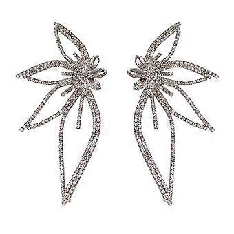 أقراط حجر الراين للفتيات في سن المراهقة زهرة مشبك الأذن 7X3.5X0.4 سم أنيقة دائم 1 زوج