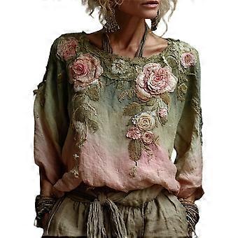 Women Tops Round Neck Long Sleeve Loose Fit Pullover Tops 3D Flower Pattern Integrated Printing Shirt Daily Wear